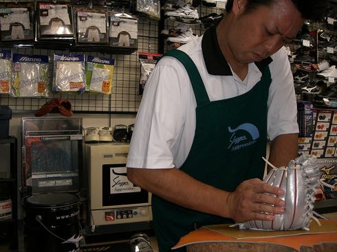 通常この様な限定グラブは、特殊レザーや特殊着色が使われている為に、湯もみ型付けは大変難しいと言われておりますが、当店では湯の温度や時間に配慮し、かつソフトタッチな手揉みで問題なくクリア!