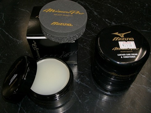 そこで!!このオイルをお勧めしよう!右側のオイルはレザーケアーとレザーコンディショナーが合体しており、上段のクリームは受球面側のポケット部や小指部など、革を柔らかくしたい箇所に。下段のコンディショナーは背面側やそれ以上柔らかくしたくない部分に薄くまんべんなく塗って下さい。