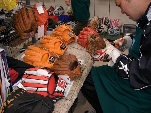 旧型グラブの修理にたまたま同じグラブがやってきた。