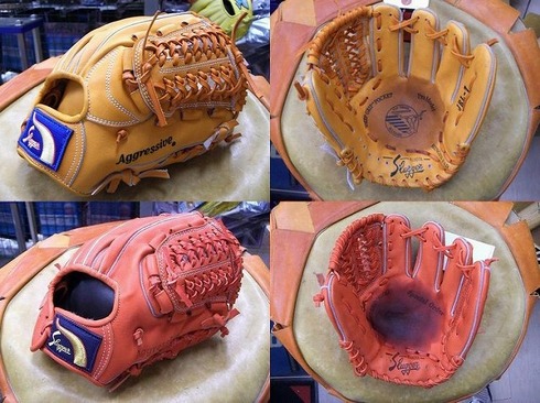 型付け後のイメージとして参考にして頂ければと思い、出荷前のグラブ達の撮影をしてみた。