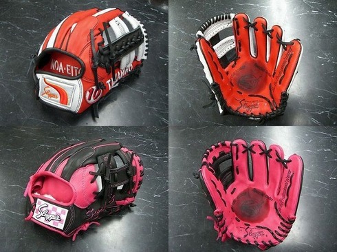 それぞれの手に合わせて、型も違う。同じ型のグラブだが、ラベルも替えてバッチリや!!