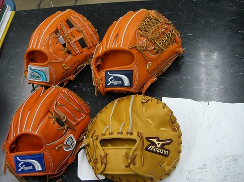 綿密な打ち合わせをした結果、それぞれのグラブにそれぞれの仕様を施し、どれも完璧に仕上げていっております!