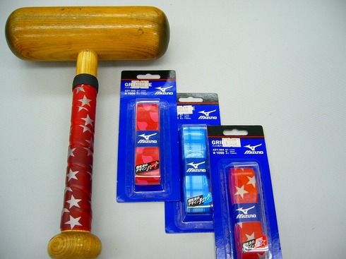 かわいいグリップ巻いてがんばっとるでー!ミズノから限定で出ておりますデザイングリップ。高校野球では使用できないが、素振り用バットや一般の方や・・・いかがですか?