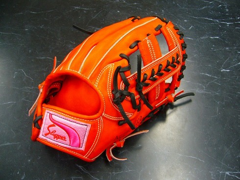 大変気まぐれではございますが、この度鉄人限定としまして、基本モデルKSG-Bu5X Fオレンジを全紐替え(ブラック)し、今は無きMラベル(ピンク×濃ピンク/赤)に通常の白糸ではなくあえて黒糸で変更し、何処にもない逸品を作成!