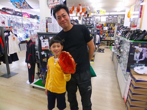 小学2年生にしてはえらくしっかりしたナイスガイな男の子。2年位前になるかなぁ。。。お父さんとキャッチボールをする為にグラブを。そして初めてのグラブにはきちっとした型付けを施したグラブを。。。とご家族でご来店頂いたのが始まり。