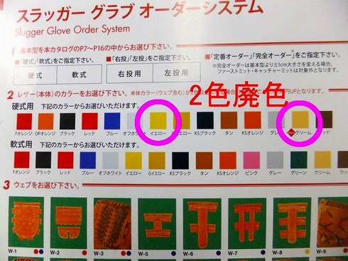 来年度久保田スラッガーの硬式オーダーグラブにおきまして、レザーカラー『イエロー』『クリーム』が廃色になります。
