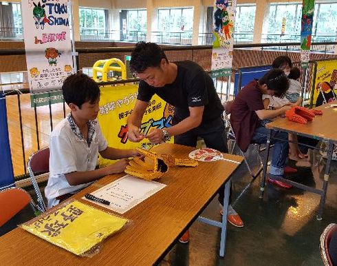 簡単そうで難しいグラブの「紐通し」に、参加してるみんなは悪戦苦闘!!!