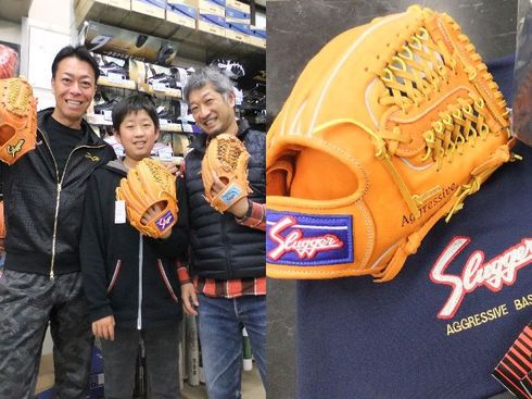 まだまだ手が小さい息子さんの手に合わせてグラブを慎重に選びました!!!