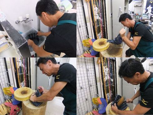 しっかり乾燥させたのち、今度は革の「モチモチ感」を取り戻す加工に!!!