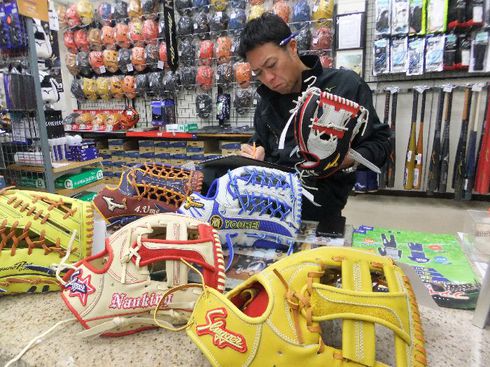 カラフルな仕上がりのグラブは間違いがないかを一つ一つチェック!!!