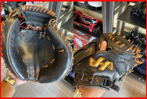 会場内には、しっかり使用テストを終えたキャッチャーミットも展示され、直接手に触れる事ができた!!