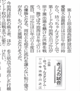 今治西高等学校と川之江高等学校の決勝戦‼️